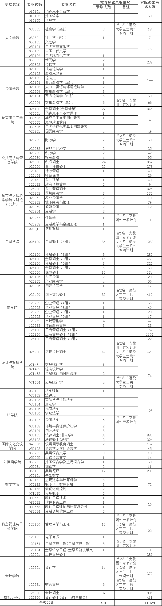 原文標題:上海財經大學2020年碩士研究生招生推薦免試錄取情況和實際參加考試人數