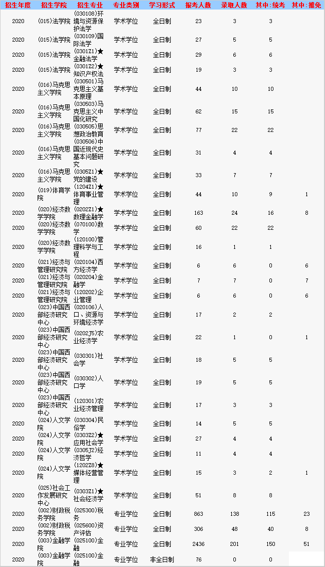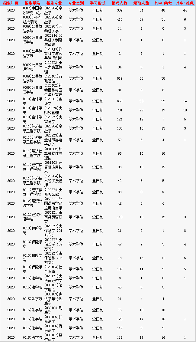 原文標題:西南財經大學歷年報考、錄取數據查詢頁面 (碩士)(2000-2020)