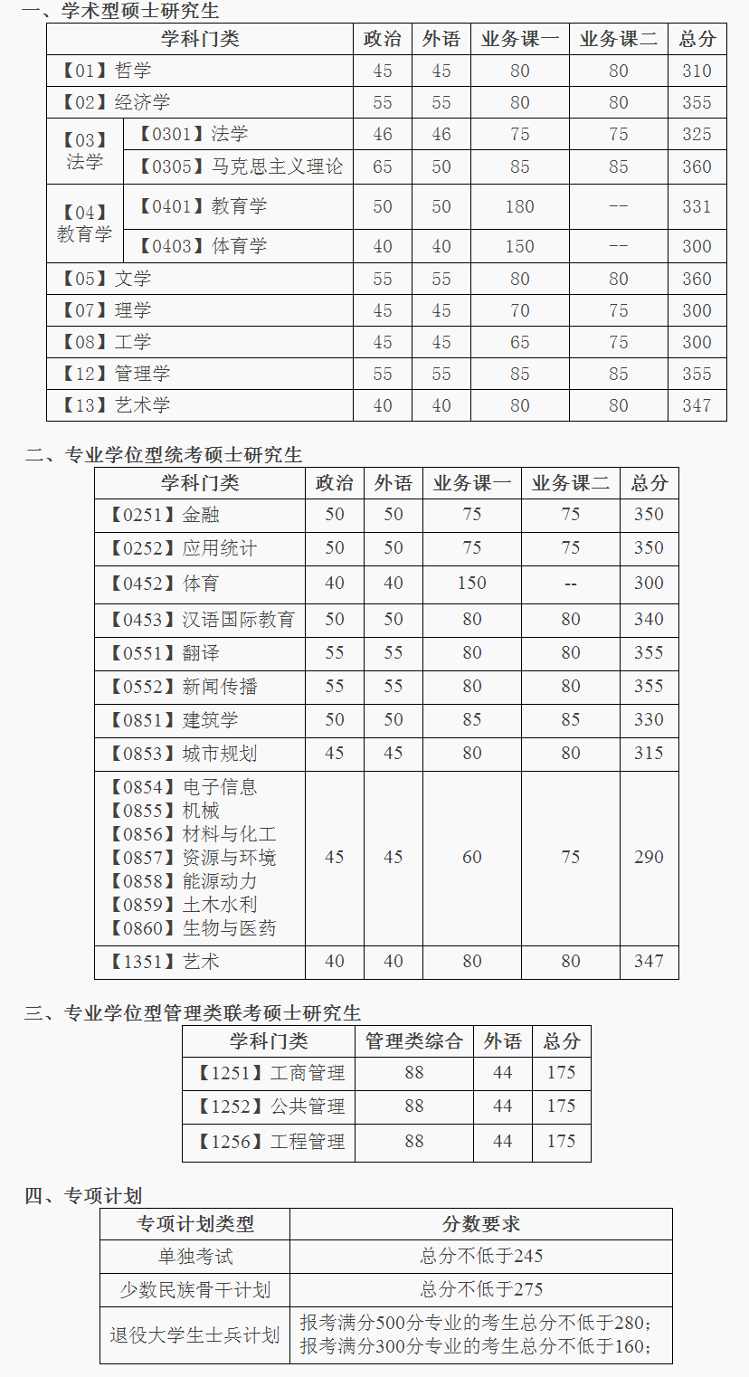 根據教育部相關文件精神,結合我校實際情況,經學校招生工作領導小組討論研究決定,我校2020年全國碩士研究生招生考試考生進入復試的初試成績基本要求如下: