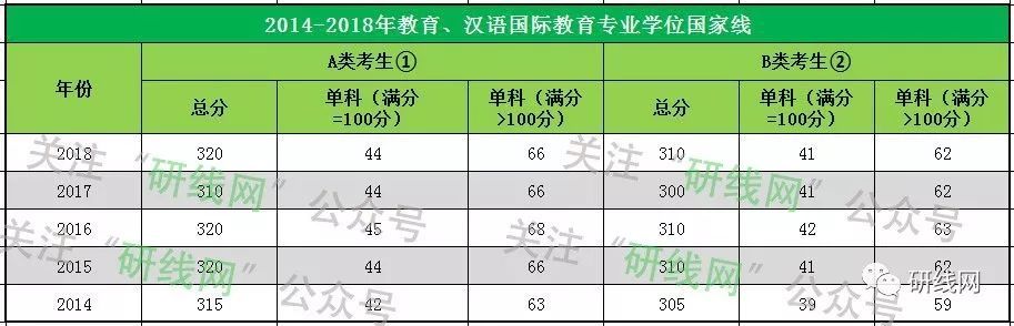 2014-2018年教育、漢語國際教育專業學位國家線: