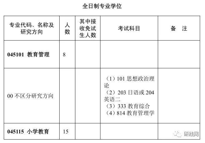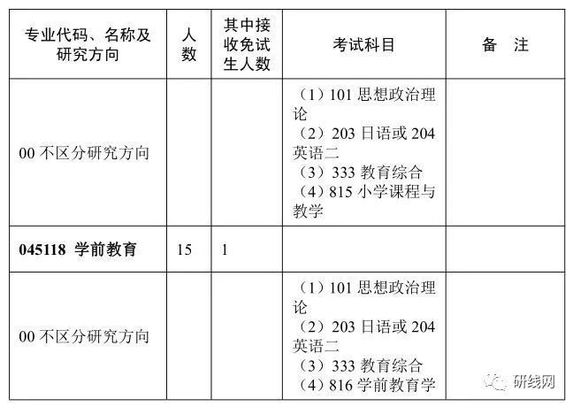 考試科目:教育學碩士學術學位的考試科目一般為3個(思想政治+英語或日語+一門專業課),專業學位的考試科目一般為4個(思想政治+英語或日語+兩門專業課)。考試語種為日語、俄語的考生,只限報考內蒙古師范大學、遼寧師范大學、沈陽師范大學、渤海大學、延邊大學、東北師范大學
