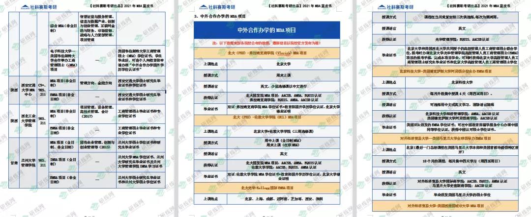 同時(shí)中外合辦MBA項(xiàng)目也是歷年以來(lái)備受考生青睞的選擇,藍(lán)皮書(shū)中也幫大家詳細(xì)總結(jié)了各大院校的中外合辦項(xiàng)目情況,比如上課地點(diǎn)、上課方式、授課語(yǔ)言、學(xué)院的國(guó)際認(rèn)證情況,以及畢業(yè)證書(shū)授予情況。
