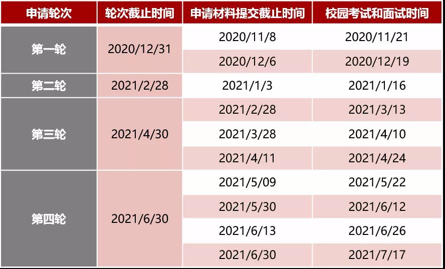 通過資格審核的申請人將會收到面試邀請。面試時長約為40分鐘,包括“自我介紹與問答”和“觀點闡述與問答”兩個環(huán)節(jié)。面試時間詳見以下“2021年申請及考試時間”安排。更多面試信息請參閱官網(wǎng)。