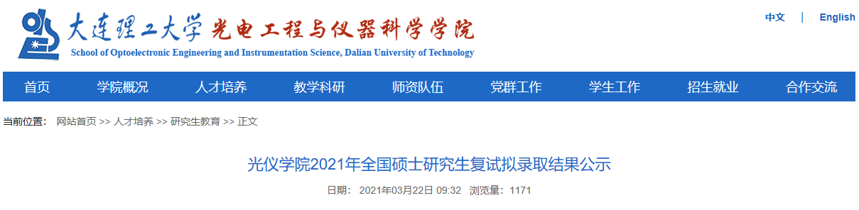 以上就是“2021考研擬錄取名單:大連理工大學光儀學院2021年碩士研究生擬錄取名單”的全部內容,更多錄取名單相關內容,盡在“錄取名單”欄目!