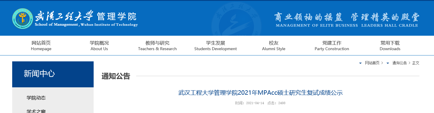 原文標(biāo)題:武漢工程大學(xué)管理學(xué)院2021年MPAcc碩士研究生復(fù)試成績公示