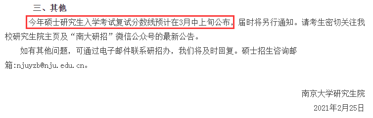 我校2021年碩士研究生復試基本線和相關工作安排預計將于3月中下旬陸續公布。