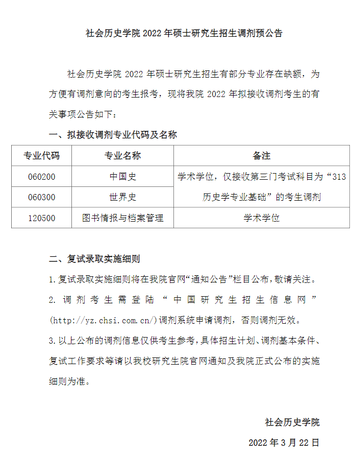 6.相關調劑具體要求、招生復試錄取辦法等信息,請及時關注學校研招辦的正式通知。