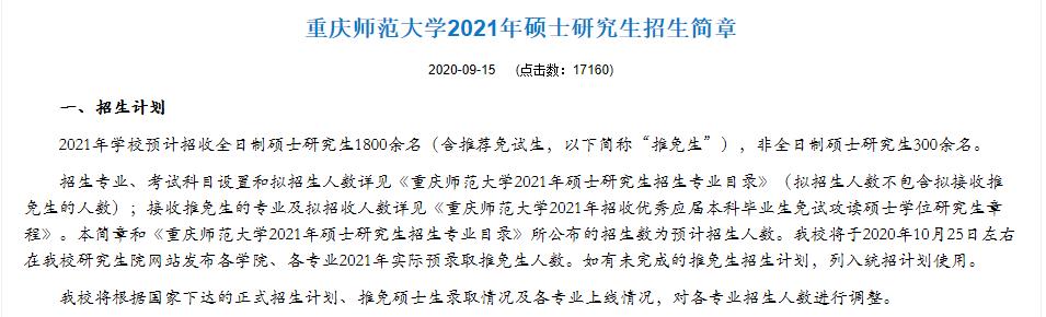以上就是“考研院校公告:重慶師范大學2021年與2020年考研招生人數信息變動解析”的全部內容,想了解更多考研信息,請多多關注我們!
