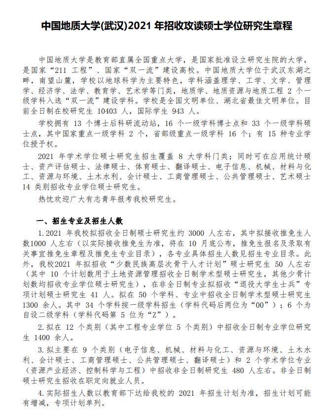 詳細(xì)內(nèi)容:中國地質(zhì)大學(xué)(武漢)2021招生簡章