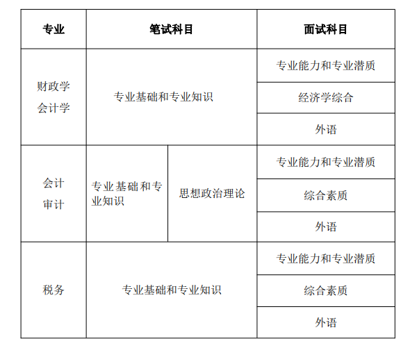 2.方式:筆試考試科目除全國統考和聯考科目外,其它科目由財科院命題,每科考試時間為3小時,詳細考試科目及相關要求等請見《初試目錄》《準考證》。
