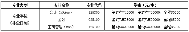 (1)全日制專業學位碩士研究生每生每年學費10000元(不含中外合作辦學項目)。中外合作辦學項目學費將在各自單獨的招生指南中說明。
