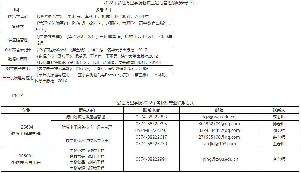 附件2: 浙江萬里學院2022年各招研專業聯系方式