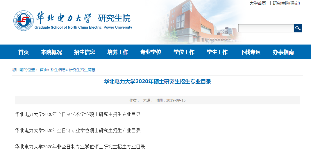2020年碩士研究生招生專業目錄陸續已出,今天小編給大家整理的是“華北電力大學(北京)2020年碩士研究生招生專業目錄”的相關內容,有報考意愿的小伙伴要注意下哦!